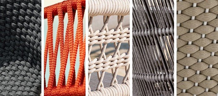Для создания садовой мебели, которая максимально расширяет возможности дизайна и может жить на открытом воздухе долгие годы, могут использоваться полиолефиновый или полиэфирный канат. Прочный, мягкий и эластичный, этот высококачественный роуп устойчив к выцветанию и окрашиванию, а также прекрасно выдерживает непогоду. Он может быть тонким или толстым, плоским или круглым, его можно обернуть, сплести, связать крючком, скрутить и завязать множеством способов как макраме. Это делает дизайнеров счастливыми, а пользователей еще более счастливыми.
