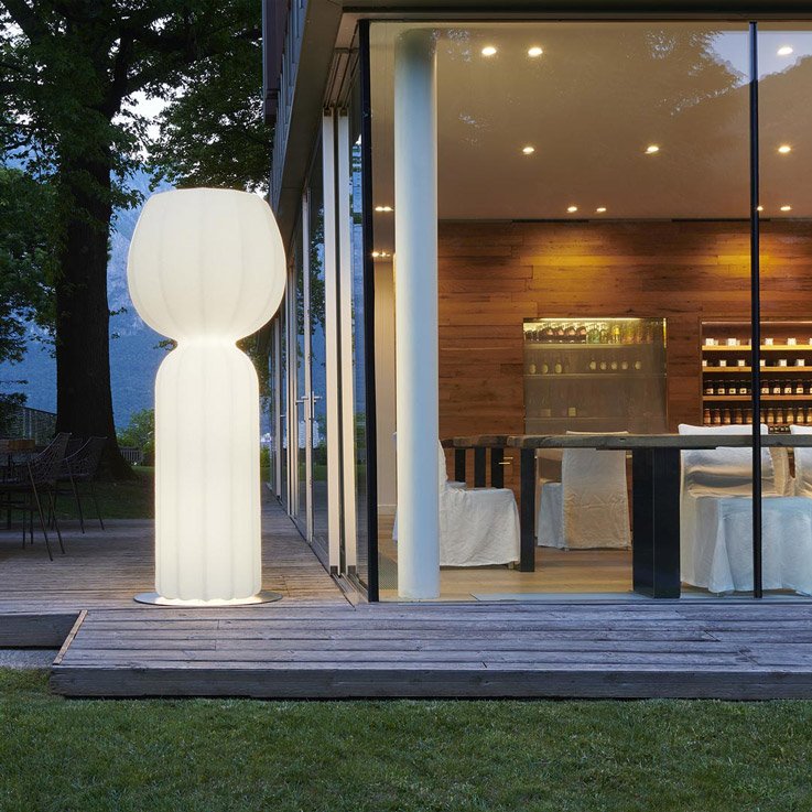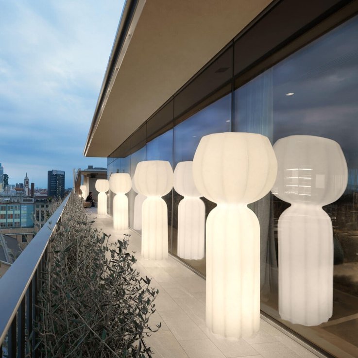 Cucun – это большой напольный светильник, рожденный в 2018 году и вдохновленный простой и естественной формой цветов, овощей и луковиц. Структура из полиэтилена с текстурой поверхности бумаги и ребрами является данью некоторым знаковым моделям итальянского дизайна прошлого века. Его дизайн идеально подходит для создания мягких световых эффектов. Классический полиэтиленовый порошок смешивают со специальными стеклянными волокнами, которые улучшают формы напольной лампы Cucun. Светильник подходит для украшения садов и открытых площадок. Благодаря своему запоминающемуся дизайну, он идеально подходит как для частных, так и для коммерческих помещений.