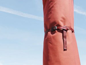 - Чтобы оптимизировать срок службы ткани, необходимо периодически удалять пыль, пятна и другие загрязнения, чтобы предотвратить образование видимых следов на ткани. Перед закрытием зонта необходимо убедиться, что ткань полностью сухая. В течение нескольких месяцев при неиспользовании зонт должен храниться в сухом помещении.