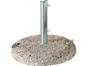 - Вес утяжелительных плит должен соответствовать рекомендованным производителем нормам для каждого зонта индивидуально. Недостаток веса на основе делает зонт нестабильным, повышает риск падения и повреждения. Для зонтов с центральной опорой, круглой утяжелительной плитой необходимо регулярно проверять надежность крепления трубки к утяжелителю, при необходимости подкручивать болт.