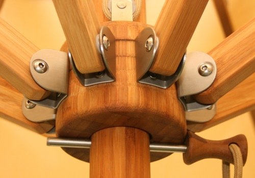 - В зонтах с боковой опорой используется специальный механизм закрытия с тросом. При закрытии зонта необходимо следить, чтобы трос был в постоянно натянутом состоянии, если трос не натянут, есть вероятность, что он может запутаться.