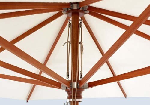 - При использовании зонтов с основой из древесины, необходимо помнить, что древесина имеет природное происхождение, обработанное специальным покрытием, поэтому считается естественным изменение яркости цвета при эксплуатации в неблагоприятных условиях. Чтобы вернуть первоначальную яркость, достаточно обработать древесину специальными средствами, которые можно приобрести в специализированных магазинах.