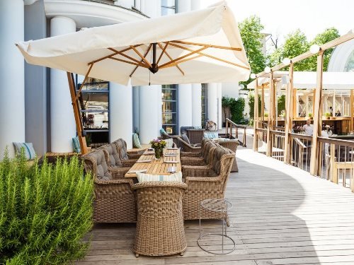 Каждый год владельцы уличных заведений стараются открыться с первым весенним солнцем. Поторопитесь и Вы! А мы поможем Вам подобрать наиболее подходящие к интерьеру варианты зонтов и мебели, создавая таким образом романтическую атмосферу летней веранды, с которой мы так хорошо знакомы из личных и деловых поездок по красивейшим городам Европы.