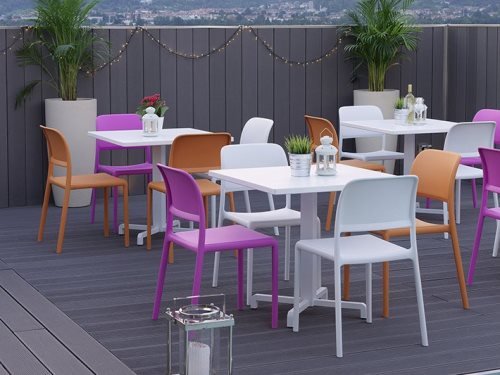 Дизайнеры утверждают, что пластик - это материал must-have для людей, которые следят за мейнстримами в мебельной моде. Стулья и кресла из пластика сочетают в себе три главных фактора: эстетику, удобство и долговечность. Такую мебель не редко можно увидеть в кафе, так как она обладает такими важными для заведений общественного питания качествами, как устойчивость к повреждениям, высокая прочность и мобильность. Пластиковая мебель устойчива к непостоянству температур и любым осадкам. Цветовая палитра поражает воображение. В зависимости от стилистики и концепции заведения можно подобрать наиболее подходящие по дизайну варианты. В особенности, это актуально для кафе и ресторанов с большой летней террасой и высокой проходимостью.