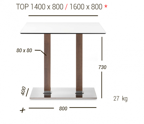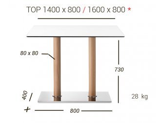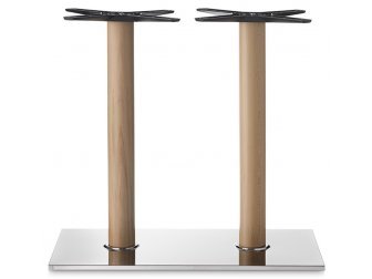 Двойное подстолье из стали и бука подходит для столешниц разных форм и цветов. Элегантные линии и правильные пропорции модели делают ее универсальной для использования в сфере Contract и идеальной для многих помещений, таких как рестораны, бистро, бары, пабы, кафе.