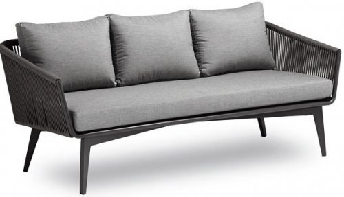 Плетение из роупа является отличительным элементом дивана Diva, создавая привлекательную и текстурированную отделку, охватывающую металлический каркас. Диван Diva в комплекте с креслами из этой же коллекции идеально подходит для обстановки лаунж зоны на открытом пространстве.