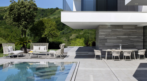 Элегантность, функциональность и универсальность являются отличительными чертами коллекции Emma, которая включает стулья, обеденные и барные кресла, и недавно пополнилась креслами бержер - изделием, в котором лучше всего выражено плетение спинки, а также креслами для отдыха, диванами, лежаками и журнальными столиками. Возможность создать лаунж зону всоответствии с вашими предпочтениями делает коллекцию универсальным предложением для любых современных пространств.