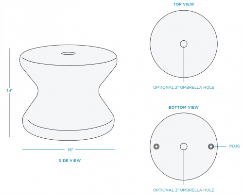 14-дюймовый столик Signature - это основа для создания идеального бассейна с местом для книги, напитка и зонтика. Предназначен для использования на выступе бассейна при глубине воды до 10 дюймов (25.4 см), а также на площадках возле бассейна. Также для заказа доступна модель с отверстием для зонта.