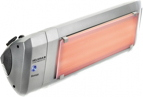 Hi Design 9/3S20BTW – уличный инфракрасный обогреватель (IPX5 - защита от брызг воды) с функцией Bluetooth®. Корпус обогревателя выполнен из литого алюминия. Инфракрасные обогреватели характеризуются максимальной теплоотдачей, наличием специальной лампы. Всё это делает уникальной новую линию Heliosa® Serie 9. Технология Bluetooth позволяет регулировать тепловую мощность непосредственно с Вашего смартфона. При включении таких моделей Heliosa® Serie 9 со стеклом White screen, стекло становится слегка розового цвета.