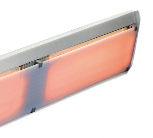 Это наиболее частый тип монтажа, позволяющий установить прибор не нарушая конструкции стен. Расположение на стене, подобно светильнику, является оптимальным для обогрева. Желательно, чтобы установка состояла из нескольких источников для равномерного распределения без теней, а не из одного большого источника. Все модели поставляются с кронштейном для данного типа установки. Модели серий 996, 997, 998 и 999 предназначены только для настенного монтажа.