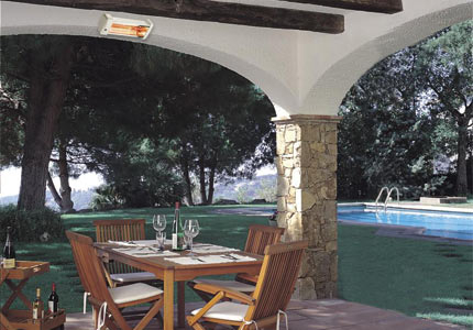 Важно, чтобы область покрытия обогревалась максимально равномерно. Для этого устанавливайте обогреватели под углом в 45° и с наложением рабочих областей. Более того, вертикальное отопление с потолка не рекомендуется, так как будет обогреваться только верхняя часть тела, что будет вызывать дискомфорт. В гостиничном секторе следует помнить, что количество излучаемого тепла прямо пропорционально длительности пребывания клиента в гостинице. Более того, количество теплового излучения будет больше в местах с высоким уровнем влажности.