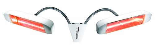 Hi Design 996 - это настенная модель мощностью 3000 Вт в белом цвете для установки внутри помещений, а также на открытых площадках снаружи. Состоит из двух влагозащищенных обогревателей серии Heliosa 11 на гибких «плечах»-держателях, которые позволяют изменять направление тепла в нужную зону. Два включателя на корпусе позволяют управлять двумя электрообогревателями раздельно.