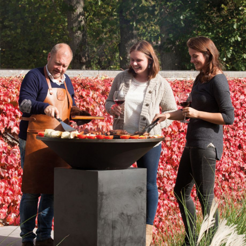 Очаг OFYR Classic 100 в черном цвете - классика во всех своих проявлениях. Изготовлен из прочной стали с черным термостойким покрытием. Может выступать арт-объектом вашего сада даже тогда, когда не используется по назначению. Благодаря высококачественной стали кортен очаг OFYR Classic 100 устойчив к погодным условиям и долговечен. На очаге такого размера приготовление пищи для большой компании станет легким и невероятно приятным.