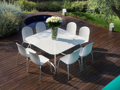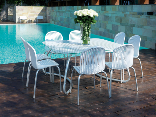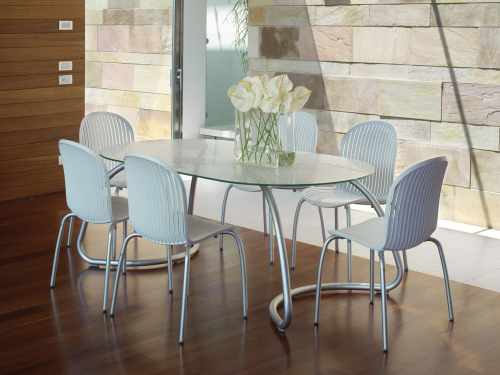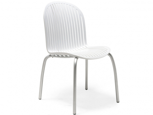 Ножки стула изготовлены из анодированного алюминия, а сиденье и спинка - из полипропилена.