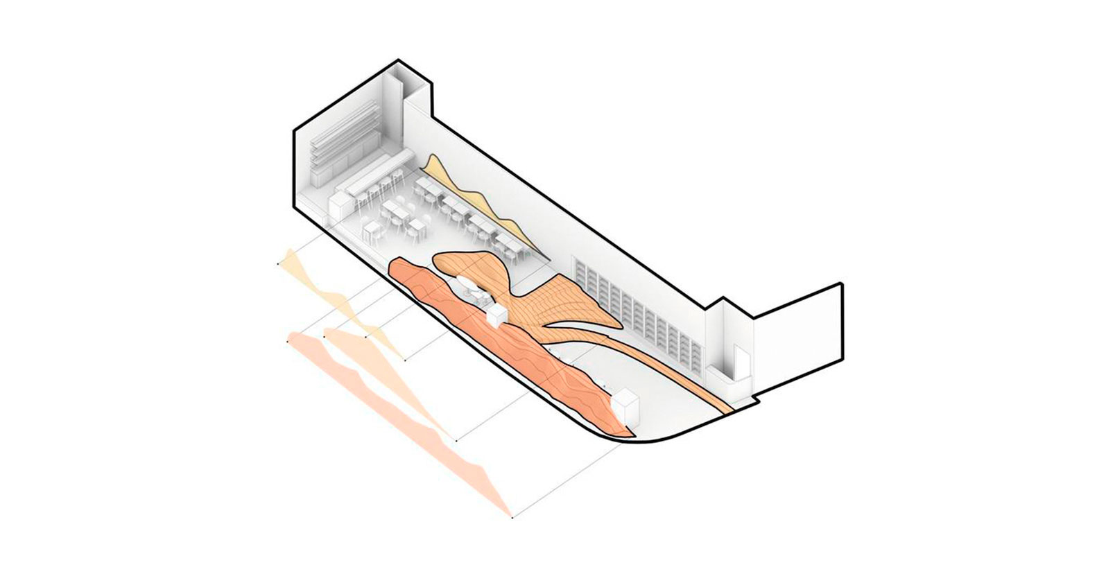 Представленный проект Anti-domino No. 02 является первым завершенным из этой серии. «В этом проекте мы используем набор новых структурных языков, которые можно рассматривать как топографию, ландшафт или дизайн мебели». Все конструкции изготовлены из цельной древесины и вырезаны компьютеризированной цифровой машиной управления.