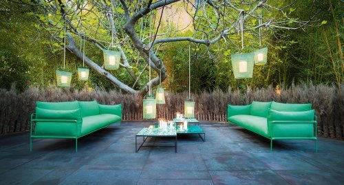 Kaba - это коллекция уличной мягкой мебели, состоящая из модульных элементов, кресла, двухместного дивана и пуфа. Подушки сидений, спинки и подлокотники прикреплены к стальной конструкции таким образом, что их можно легко снять и заменить в случае необходимости.