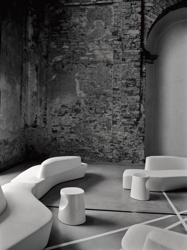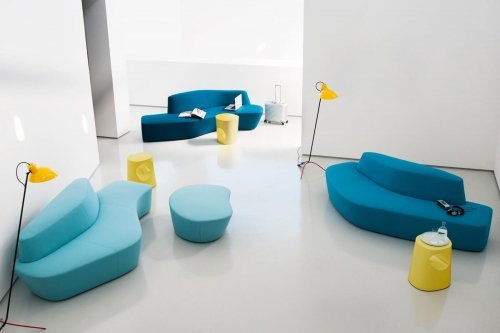 Polar - это система сидений, вдохновленная айсбергами северных морей. Все его компоненты имеют твердые объемы и наклонные линии, которые можно комбинировать для создания диванов и кресел со спинками или без них.