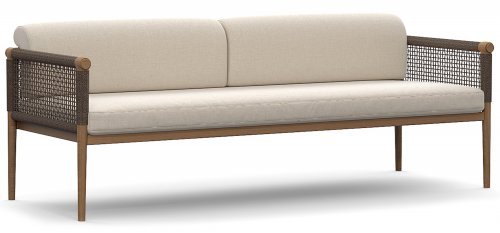 Строгий и минималистичный дизайн коллекции Lodge, описанный в структуре, полностью выполненной из тика, оплетенной круглым канатом, который создает мягкое и прочное плетение. Гостеприимное гнездышко, которое становится местом для разговоров и чтения.