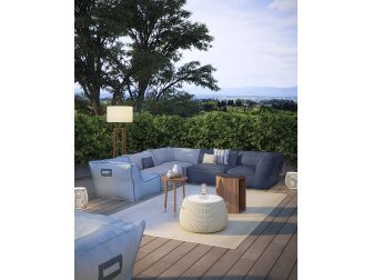 Ludo - это коллекция кресел, диванов и столиков, выполненных из тикового дерева и плетения каната из тефлонового акрила. Мебель идеально подходит для обстановки лаунж зон на открытом воздухе.