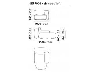 Jeff - это современная модульная диванная система, разработанная как набор миниатюрных архитектур, умело объединенных для создания множества модульных и реконфигурируемых сценариев. Отличительной чертой Jeff является гармония объемов: прямоугольная спинка в сочетании с ажурным сиденьем смягчают и придают баланс всей конструкции. Безрукавный линейный элемент, изготовленный из очень удобного и недеформируемого пенополиуретана, опирается на фанерную платформу, обтянутую тканью, которая приподнята на 3 см над землей небольшими ножками. Подушка спинки дополнительно способствует общему комфорту дивана, обеспечивая эффективную поддержку поясницы. Обивка съемная, поэтому ее можно легко чистить и обслуживать. Система соединительных крючков позволяет демонтировать и переконфигурировать диван, персонализируя его и адаптируя в соответствии с эволюцией пространства.