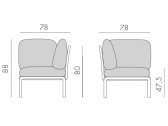 Модули Komodo выполнены из стеклопластика, имеют складные спинки и боковины, съемные подушки, благодаря чему можно составить диван любой длины, превратить отдельные модули в столики или пуфы.