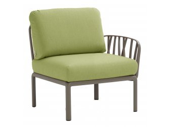 Модули Komodo выполнены из стеклопластика, имеют складные спинки и боковины, съемные подушки, благодаря чему можно составить диван любой длины, превратить отдельные модули в столики или пуфы.