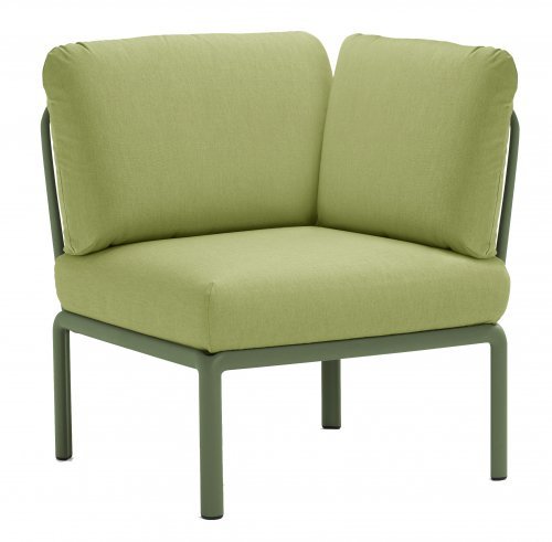 Модули Komodo выполнены из стеклопластика, имеют складные спинки и боковины, съемные подушки, благодаря чему можно составить диван любой длины, превратить отдельные модули в столики или пуфы.