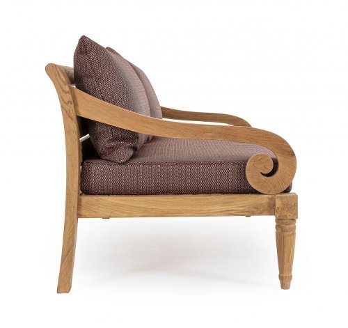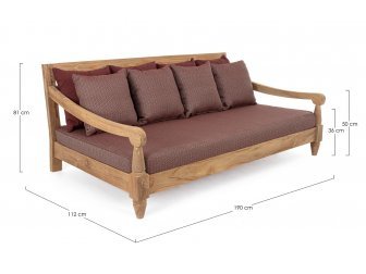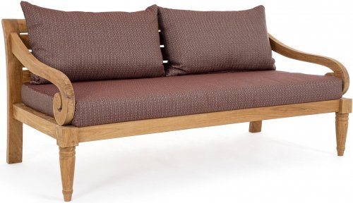Уличный диван Karuba выполнен из тика, поэтому отличается устойчивостью и долговечностью. Сиденье и подушки - из солнцезащитной олефиновой ткани. Стильный диван Bali идеально подходит для обстановки лаунж зоны в саду или на террасе загородного дома.