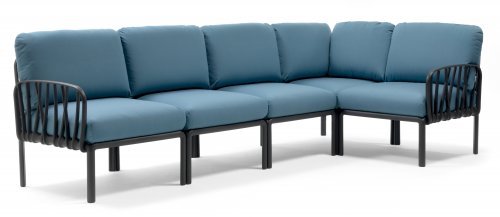 Модули Komodo выполнены из стеклопластика, имеют складные спинки и боковины, съемные подушки, благодаря чему можно составить диван любой длины, превратить отдельные модули в столики или пуфы.