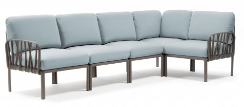 Модули Komodo выполнены из стеклопластика, имеют складные спинки и боковины, съемные подушки, благодаря чему можно составить диван любой длины, превратить отдельные модули в столики или пуфы.