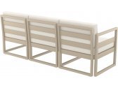 Модульный трехместный диван Mykonos предназначен для удобной самостоятельной сборки, изготовлен из прочного атмосферостойкого пластика, армированного стекловолокном. В комплекте идут удобные мягкие подушки, обеспечивающие дополнительный комфорт.