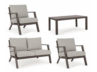 Комплект лаунж мебели Kallen является универсальным решением для обустройства открытых пространств. Дизайн всего набора заключается в линейной геометрии и классических линиях. Каркас из алюминия с отделкой "под дерево" и текстилен, из которого изготавливаются сиденья и спинки, обеспечивают комплекту прочность, долгий срок службы и возможность использовать мебель на свежем воздухе. Kallen станет отличным решением для создания лаунж зон.