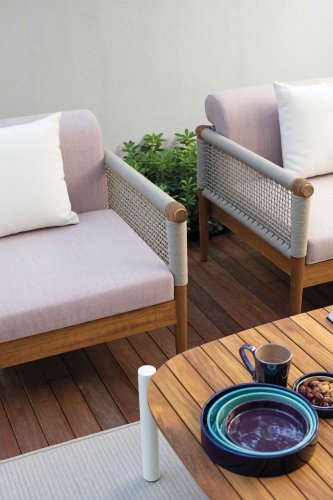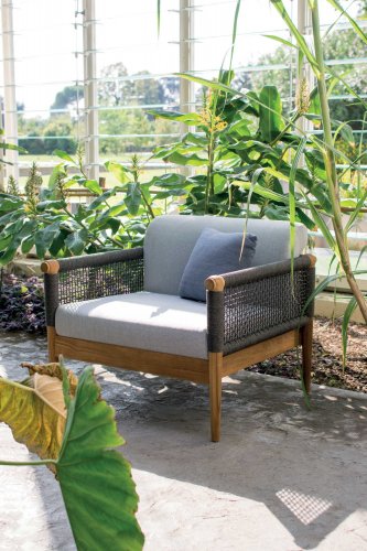 Строгий и минималистичный дизайн коллекции Lodge, описанный в структуре, полностью выполненной из тика, оплетенной круглым канатом, который создает мягкое и прочное плетение. Гостеприимное гнездышко, которое становится местом для разговоров и чтения.