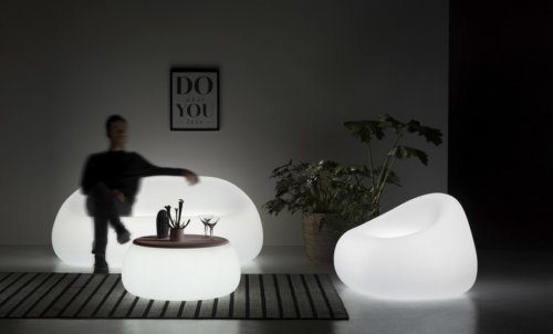 Кресло Gumball эргономичной формы, удобное для отдыха, доступно в нескольких вариантах, может быть выполнено из лакированного материала или с подсветкой.