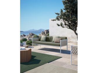 Узел - отличительный знак коллекции Dandy 2.0. Канат из тефлонового акрила серого или бежевого цвета оплетает алюминиевый каркас, создавай многочисленные узлы. Канаты ручного плетения из тефлонового акрила круглого сечения, водостойкие, легко чистятся. Материал отличается тактильной мягкостью, как текстильная ткань, устойчив к ультрафиолетовому излучению и быстро сохнет. Вся алюминиевая мебель Atmosphera имеет порошковое покрытие белого или графитового цвета. Порошковое покрытие обеспечивает устойчивость поверхности к ударам и царапинам. Изделия хорошо подходят для того, чтобы их можно было оставлять на улице круглый год и легко чистить.
