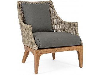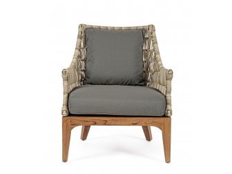 Веревочное плетение из олефиновой ткани (100% полипропилен), благодаря которому кресло выглядит стильно в любом помещении или на открытой площадке.