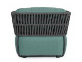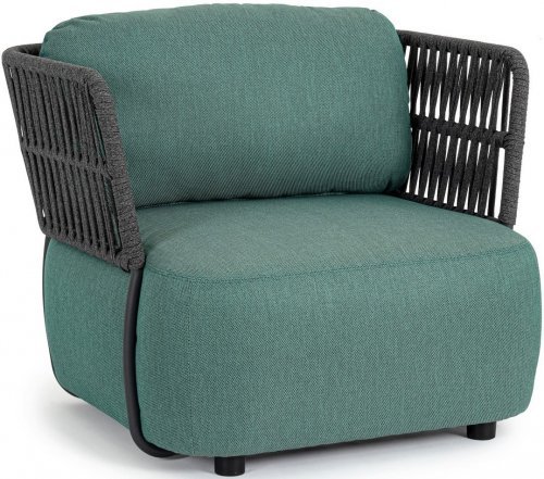 Веревочное плетение из олефиновой ткани (100% полипропилен), благодаря которому кресло выглядит стильно в любом помещении или на открытой площадке.
