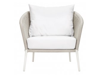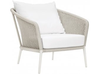Knot - это коллекция для обеденной и гостиной зоны, которая отличается красивыми плетеными элементами ручной работы, поддерживаемыми легкой алюминиевой рамой. Используя технику макраме модифицированного рифового узла, этот ансамбль необычного дизайна настолько же прочен, насколько и превосходен.