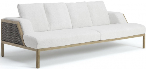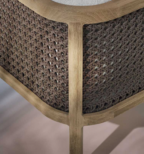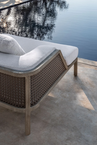 Цена на сайте указана за модель, выполненную из тика (Natural Teak), с плетением светло-серого цвета (Light Grey Round Rope) и подушками из акрила белого цвета (Acrylic Nature White).