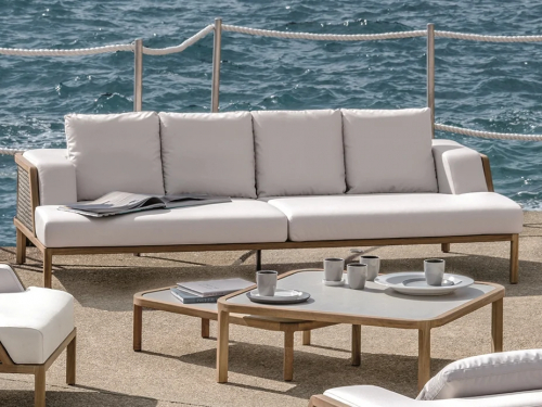 Новая лаунж коллекция Grand Life предназначена для больших и престижных открытых пространств. Каркас из мореногоили натурального тикового дерева с металлическим сердечником покрыт большими подушками, которые создают ощущение глубокого и обволакивающего комфорта.