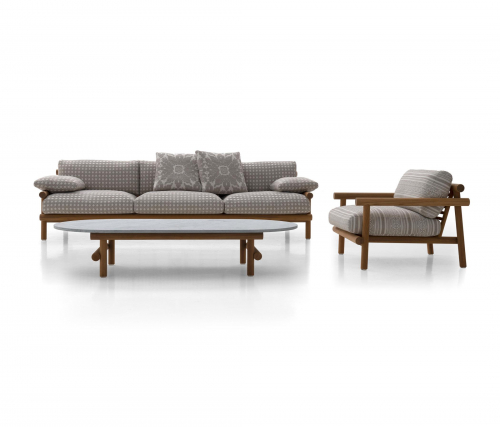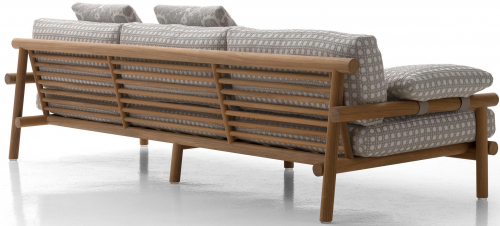 Минималистичная и инновационная коллекция Ayana становится новой главой в истории, которая связывает B&B Italia и дизайнера Naoto Fukasawa. Автор видит в дереве главного героя, интерпретированного необычно, с приятным восточным оттенком. Если глубина и высота являются явной ссылкой на традицию Юго-Восточной Азии, то спинка напоминает шведскую стенку, тренажер, превращенный в несущий элемент. Благодаря этому решению предметами коллекции Ayana можно любоваться и оценивать на 360 градусов, открывая с каждой стороны новую элегантную игру пересечений и пропорций. Двух- и трехместные диваны и кресло имеют подлокотники на разной высоте. Подлокотник кресла выше, что обеспечивает более эргономичное сиденье. Подлокотник дивана, который расположен ниже, можно комбинировать с подушкой, которая легко застегивается и снимается и помогает при необходимости более комфортно лечь. Обивка этой коллекции отличается отдельными подушками, покрытыми водонепроницаемой тканью. Теплый минимализм линейки Ayana дополняют стул, обеденный стол и низкий столик. Обеденный стул напоминает стилистические особенности других сидений для идеального семейного ощущения благодаря своей структуре из натурального тикового дерева и двум мягким подушкам, обтянутым тканью. Широкие и гостеприимные размеры изделий коллекции Ayana позволяют создавать приятную дружескую атмосферу на открытом воздухе. Ayana - это проект с зеленой душой. Тик, используемый для изготовления конструкций, сертифицирован FSC (Лесной попечительский совет)/ Знак FSC - показатель того, что продукция происходит из леса, в котором ведется экологически и социально ответственное лесное хозяйство. Все материалы, из которых состоят различные элементы серии, в конце жизненного цикла продукта могут быть разделены и утилизированы с уважением к окружающей среде.