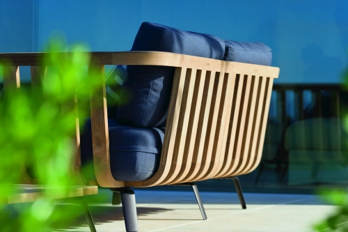 В модульной коллекции Welcome тиковые планки были изогнуты паром с использованием старинной техники ручной работы. Все подушки из коллекции Welcome доступны в более чем 30 различных цветах, что позволяет создать персональную атмосферу на открытом пространстве.