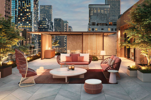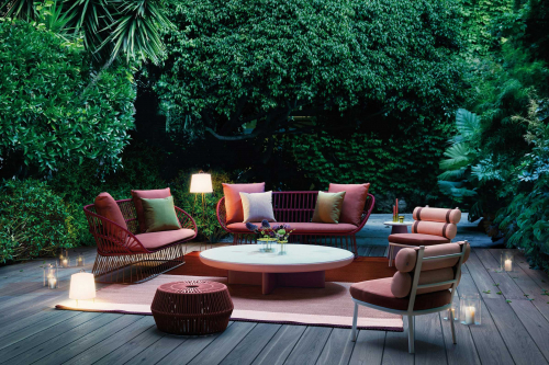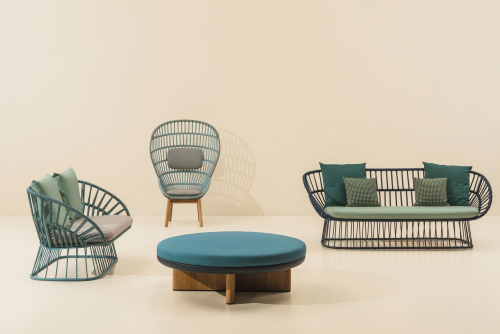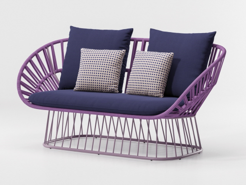 Cala - это диван с плетеной спинкой, который может использоваться для отдыха и общения на открытом воздухе. Широкий выбор металлических покрытий, цветов каната и тканей подушек предлагает множество возможностей для воплощения индивидуального дивана в соответствии с различными проектами.