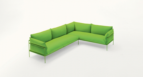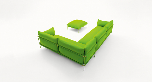 Kaba - это коллекция уличной мягкой мебели, состоящая из модульных элементов, кресла, двухместного дивана и пуфа. Подушки сидений, спинки и подлокотники прикреплены к стальной конструкции таким образом, что их можно легко снять и заменить в случае необходимости.