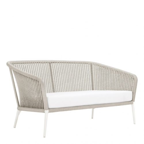 Knot - это коллекция для обеденной и гостиной зоны, которая отличается красивыми плетеными элементами ручной работы, поддерживаемыми легкой алюминиевой рамой. Используя технику макраме модифицированного рифового узла, этот ансамбль необычного дизайна настолько же прочен, насколько и превосходен.