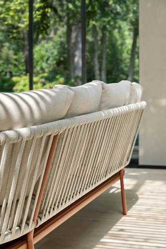 Плетеный диван Ria предназначен для размещения двух персон. Модель изготовлена из материалов с высокой устойчивостью к атмосферным воздействиям и предназначенных для использования на открытом воздухе. Благодаря этому диван идеально подойдет для открытых террас ресторанов, летних кафе и любых других площадок на улице. В комплекте предусмотрена подушка на сиденье, обеспечивающая комфорт. Ярким акцентом является плетение на спинке и боковинах, которое придает дивану оригинальность.
