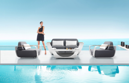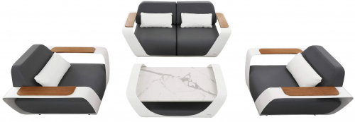 Мебельный гарнитур состоит из двух кресел, двухместного дивана и кофейного столика с керамической столешницей. Все выполнено в тонкой и минималистской форме, которая подчеркивает уникальный и футуристический характер мебели. Комплект создан для всех, кто ценит роскошь и комфорт. Мебель отличается использованием изящных, рациональных форм, которые восхищают своим эстетичным видом и функциональностью.