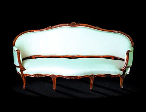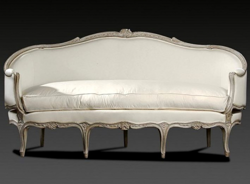 - Диван выполнен в стиле Людовика XV, который характеризуется вниманием к декору, предпочтением завиткам, выгнутыми ножками (известные как «ножка Людовика XV»). Стиль Людовика XV - это зрелое рококо, которое отличается особенной легкостью, его обстановка прелестна, изящна и элегантна, намекает на расслабление и стремится к удобству.
