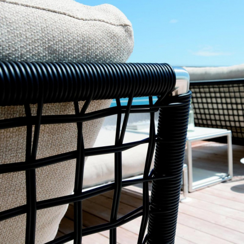 В этой коллекции, как и в любой мебели Coro используются только чрезвычайно качественные материалы. На спинке моделей используется привлекательный и прочный акриловый шнур, а каркас изготовлен из высококачественной нержавеющей стали 316, которая также используется на яхтах в соленой воде. Чехлы и подушки доступны в одном цвете или разных цветах со специальной специальной тканью для наружного использования. Будь то диван, кресло, шезлонг, стул - мебель этой серии не только визуально радует глаз, она также впечатляет своими прекрасными материалами и атмосферостойкостью. Не торопитесь, посмотрите все возможные комбинации, которые предлагает эта коллекция.