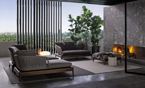 - Деревянное основание 33 мм из массива дерева ироко, высушенного в печи. Обработанное на станке с числовым программным управлением, соединенное и отделнное вручную. Структура доступна в натуральном или темно-коричневом цвете. Обе конструкции покрыты защитной краской, устойчивой к ультрафиолетовому излучению и атмосферным воздействиям, с уровнем глянца 35. Основание из металла, окрашенного для использования вне помещений. Тканые эластичные ленты для наружного использования из устойчивого к ультрафиолету синтетического каучука и полипропилена. Для защиты нижней части подушки сиденья предусмотрен матрас из вспененного полиуретана с нескользящей водонепроницаемой тканью с покрытием.